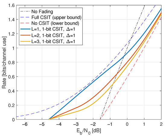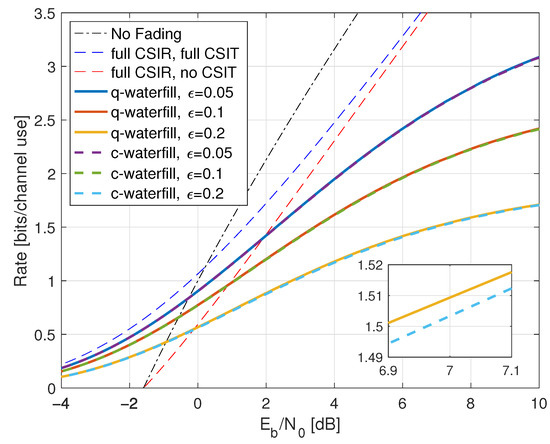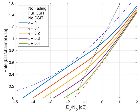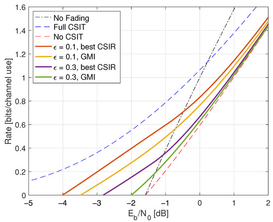 - Goldsmith, A.J.; Médard, M. Capacity of time-varying channels with causal channel side information. IEEE Trans. Inf. Theory 2007, 53, 881–899. [Google Scholar] [CrossRef][Green Version]