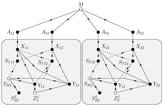 - Kramer, G. Capacity results for the discrete memoryless network. IEEE Trans. Inf. Theory 2003, 49, 4–21. [Google Scholar] [CrossRef]