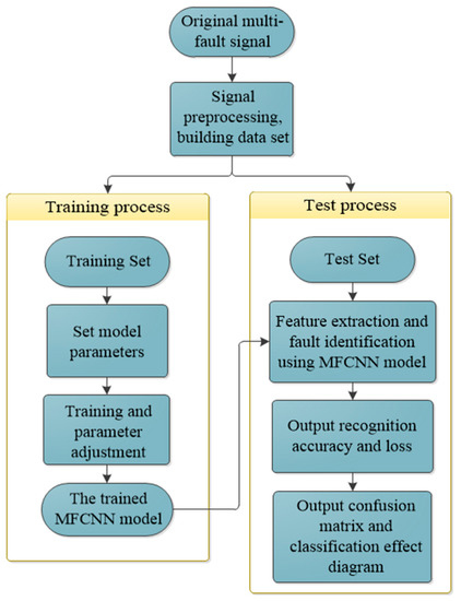 In order to solve the problem that the bearing diagnosis becomes more difficult under the condition of multiple working conditions and faults, this paper proposes an MFCNN method. The main advantages of this method are as follows. (1) The shallow neural network structure of three-layer convolution is adopted to solve the problem and reduce the burden of hardware in the calculation process; (2) the average pooling layer is used to replace the common maximum pooling layer, which significantly improves the diagnostic accuracy; (3) replacing the flattening layer and the full connection layer with the global average pooling layer greatly reduces the number of neurons in the model and prevents over-fitting; and (4) the BN layer is used to optimize the neural network model, which accelerates the speed of training and convergence, and enhances the stability of the model. The bearing multi-fault data under various working conditions are input into the convolution neural network for fault identification and diagnosis, and excellent results are obtained, which proves the effectiveness and superiority of the proposed method in dealing with bearing multi-fault classification problems. At the same time, the method proposed in this paper also has some shortcomings. As shown in the paper, for some data that are difficult to classify, such as Paderborn bearing data, although the diagnostic performance is much better than some typical lightweight algorithms, the accuracy is still slightly poor. Therefore, continuing to improve the classification performance of the model for difficult to classify data is also a direction for future research and optimization.