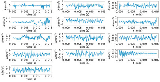 Select a sample from various types to draw time-domain and frequency-domain diagrams, as shown in Figure 17 and Figure 18. As shown in the figure, similarly, it is difficult to diagnose fault types solely through time-domain and frequency-domain diagrams. Therefore, it is necessary to introduce a convolutional neural network model for recognition.