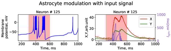 Finding ways to control and manage these modes has become an important task. One of the ways to control the dynamic modes, which also extends SNN’s standard capabilities, is to use an additional cell layer, in particular, astrocytes [35,36,37,38,39,40].