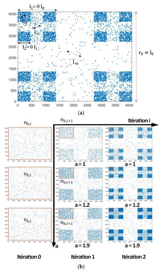 where represents the number of points per block associated with iteration , is the size of the block, such that with is the symmetry scale (intermittency parameter), the population factor represents the ratio of the number of points per block and and , are associated, respectively, to two certain consecutive iterations I and i+1, such that (see Figure 3).