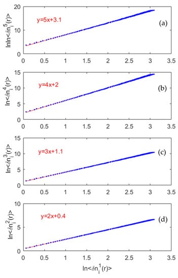 Note that this equation was also obtained by She and Lévêque in their model [22]. Thus, could be obtained statistically with Equations (3) and (4).