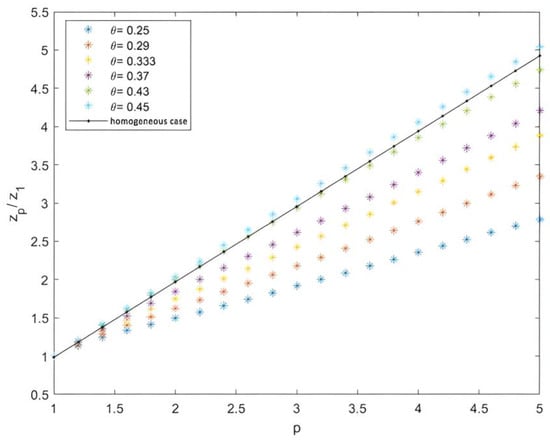 In the case of homogeneous and isotropic turbulent flows, according to the Kolmogorov assumption, the refined similarity relation () implies that . However, in an intermittent case, a deviation from p/q can arise due to fluctuations produced through the energy dissipation rate.