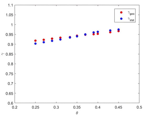 The reversibility factor calculated with the geometric analysis (using the entropic scale) would be the same when calculated with the statistical analysis (using the structure functions).