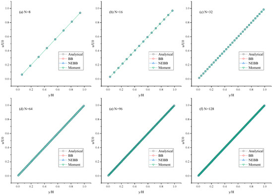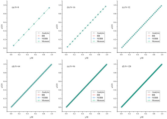 Inspired by Guo et al. [56], He et al. [57], Wang et al. [58], and Yang et al. [59], the unidirectional steady flow is adopted to analyze the numerical error of boundary conditions. The assumptions in the unidirectional steady flow are written as