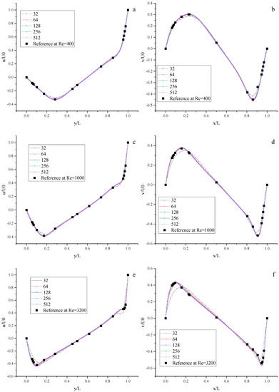 - Ghia, U.; Ghia, K.; Shin, C. High-Re solutions for incompressible flow using the Navier-Stokes equations and a multigrid method. J. Comput. Phys. 1982, 48, 387–411. [Google Scholar] [CrossRef]