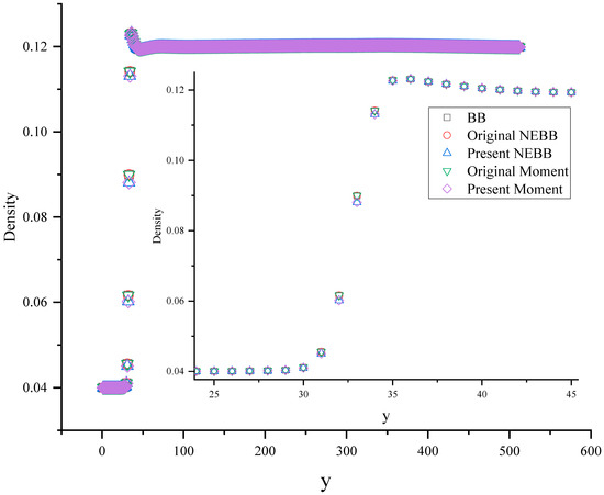 It is found that the calculation of the density in Equation (28) is the same as that in Equation (29) when uwy = 0. Then, from a fresh perspective based on the moment, it is found that the conditions of the NEBB scheme are