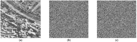 Encryption/Decryption with the original key. (a) plain image Aerial, (b) encrypted image of Aerial, (c) decrypted image of Aerial.
