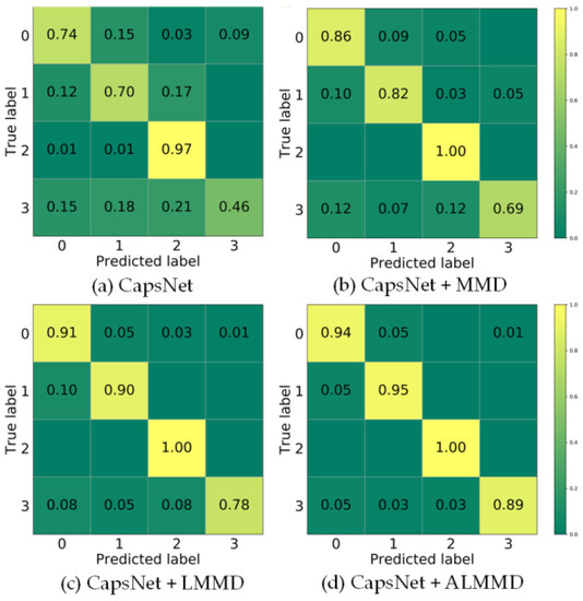 | CapsNet + ALMMD | 0.94 | 0.95 | 1.00 | 0.89 | 93.75 |