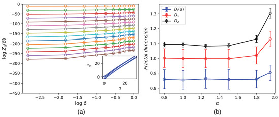 - Hentschel, H.G.E.; Procaccia, I. The infinite number of generalized dimensions of fractals and strange attractors. Phys. D Nonlinear Phenom. 1983, 8, 435–444. [Google Scholar] [CrossRef]