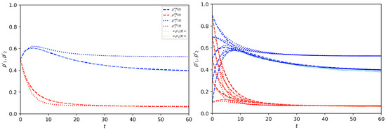 For the complete network in the limit, the mean-field equations represent exactly the evolution of the system and they can be applied, as an approximation, to other networks. Not considering structural or dynamical correlations, we expect them to still be accurate on a sufficiently dense network without specific structural features [15,43], such as an Erdós–Rényi random graph with a probability of linkage of .