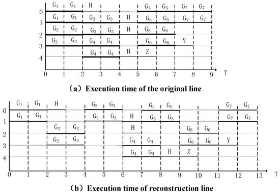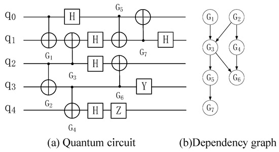 Figure 11 shows the equivalent circuit diagram of the quantum circuit in Figure 10a after the qubit occupation state is updated. Figure 12 shows the total execution time of two quantum circuits on real quantum computing devices and the time period of crosstalk.