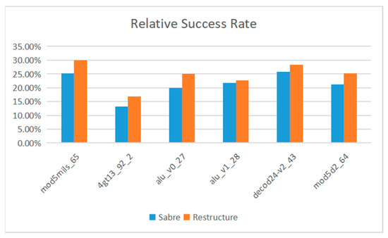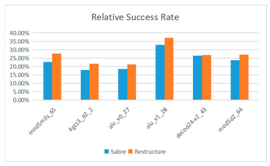 The formula for calculating the average optimization rate is shown in Formula (9), where is the average optimization rate, represents the number of successful quantum circuit experiments obtained by our proposed method, and represents the number of successful quantum circuit experiments obtained by using the Saber algorithm. represents the total number of tests.