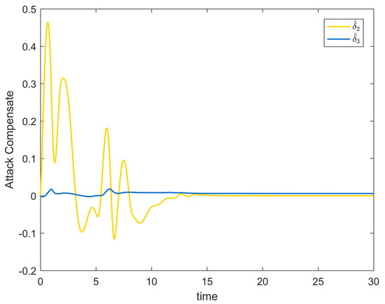 So, using the intermediate variable , the above equation can be transformed as It is the representation of the system error surface using the attack compensator. The attack compensator is , which is the estimated value of the unknown deception attacks. In the course of the subsequent analysis, with an attack compensator is used to mitigate the impact of the unknown deception attacks on the system stability control. Then, by substituting the new equation into (35), we can obtain