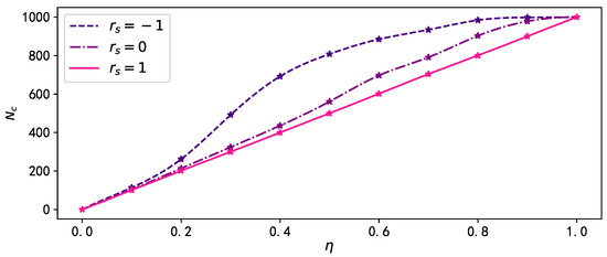 Additionally, individuals’ behavior in the virtual network may differ from their behavior in real life, such as individuals who are active in the information layer network but have minimal contact with others in reality. To simulate such complex scenarios, we adjusted the inter-layer degree correlation of the dual-layer network. In our simulation experiments, we considered three cases: ; ; and . When , the inter-layer degree correlation of the dual-layer network was fully positive, meaning that the high-degree nodes in the information diffusion layer were also high-degree nodes in the disease spreading layer. When , the high-degree nodes in the information diffusion layer corresponded to low-degree nodes in the disease spreading layer. When , there was no correlation between the degrees of nodes in different layers of the dual-layer network. All the simulation results in this section were obtained by performing over 1000 independent simulations, and averaging the results. The initial proportion of infected nodes in the spreading process was set to , and the self-aware probability was set to 0 for all simulations.