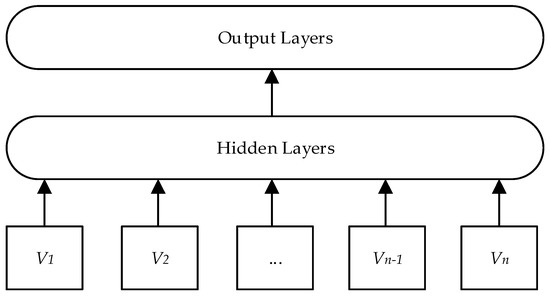 FastText is an open-source and efficient word vector calculation and text classification tool, with a three-layer model structure similar to Word2Vec’s Continuous Bag-of-Words (CBOW) model, as shown in Figure 2. Where V1, V2, …, Vn − 1, Vn denotes the word vector proposed by N-gram, and then the average of the summed word vectors is used as the text representation through the hidden layer.