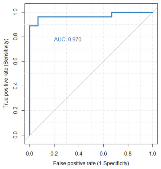- Hanley, J.A.; McNeil, B.J. The meaning and use of the area under a receiver operating characteristic (ROC) curve. Radiology 1982, 143, 29–36. [Google Scholar] [CrossRef]