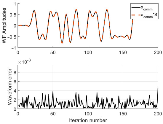 The waveform synthesized in the communication direction is shown in Figure 11. As with radar waveforms, the synthesized and the desired communication waveforms seem almost exact. The sample errors in this case, Figure 11 (lower), are defined as