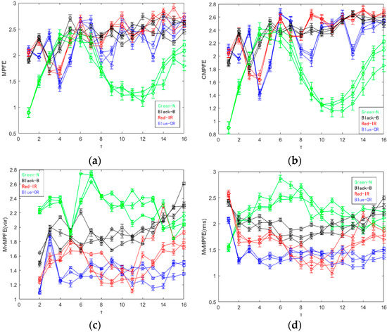 For the selected 12 sets of data, we calculated their MPFE, CMPFE, MvMPFE and CMvMPFE, respectively. The entropy curves obtained are shown in Figure 9.