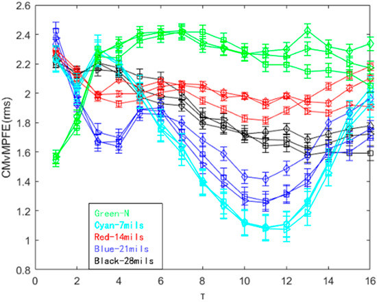 The comparison shows that the two CMvMPFE curves maintain the correct position distribution and trend of entropy values for different bearing state signals. However, the entropy values for the same state with the scale factor are more concentrated, indicating that CMvMPFE’s ability to represent faults is enhanced after compounding. It effectively distinguishes different bearing states and can be used as a rolling bearing fault feature. The CMvMPFE (var) curve lacks smoothness and information completeness when the scale factor is τ = 1. On the other hand, the CMvMPFE (rms) curve is optimal in terms of both curve smoothness and scale information completeness.