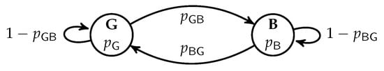 - Gilbert, E.N. Capacity of a Burst-Noise Channel. Bell Syst. Tech. J. 1960, 39, 1253–1265. [Google Scholar] [CrossRef]