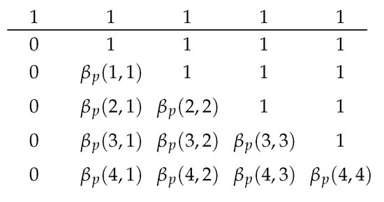 There are different implementations of available for different languages. For example, the GNU Scientific Library [] for C and C++, or the built-in function betainc in MATLAB. However, most available implementations consider non-negative real parameters and calculate different queries independently. This consideration is too general for our application, as we only need to query the integral points efficiently. In other words, this formula may be sufficient for prototyping or simulation, but it is not efficient enough for real-time deployment on devices with limited computational power. Nevertheless, this formula is useful for proving the following properties: