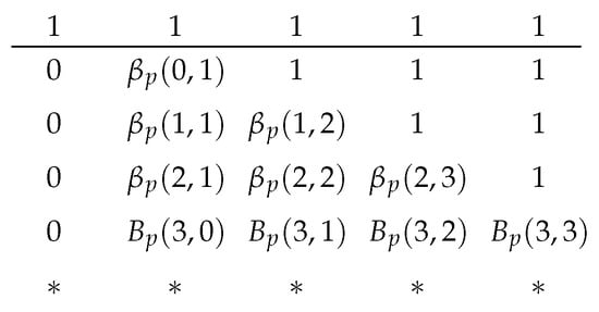 In the rest of this paper, we refer to as unless otherwise specified. From [], we know that when the loss pattern follows a stationary stochastic process, the expected rank function is a non-negative, monotonically increasing concave function with respect to t, which is valid for arbitrary field sizes. Further, for all r. However, we need to calculate the values of or its supergradients to apply adaptive recoding in practice. To cope with this issue, we first investigate the recursive formula for .