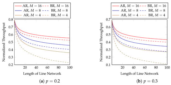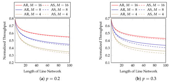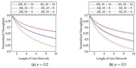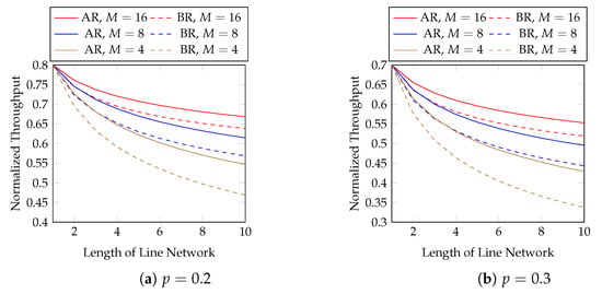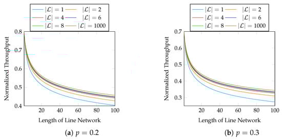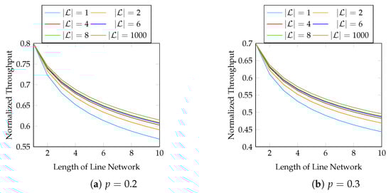 Line networks are the fundamental building blocks of a general network. Conversely, a recoding scheme for line networks can be extended to general unicast networks and certain multicast networks [,]. A line network is a sequence of network nodes where the network links only exist between two neighbouring nodes. An example of a line network is illustrated in Figure 1. In this paper, we only consider line networks in our numerical evaluations.