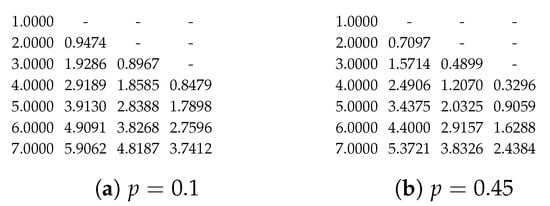 Besides generating all recoded packets by taking random linear combinations, systematic recoding [,,,], which concerns received packets as recoded packets, can be applied to save computational time. Systematic recoding can achieve a nearly indistinguishable performance compared with methods which generate all recoded packets by taking random linear combinations []. Therefore, we can also use (1) to approximate the expected rank functions for systematic recoding accurately.