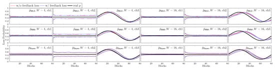 The second piece of information may also vary from time to time. In some scenarios, such as deep-space [,,] and underwater communications [,,], feedback can be expensive or is not available; therefore, a feedbackless network is preferred. Without feedback, we cannot update our knowledge on the channel condition of the outgoing link. Although we may assume an unchanged channel condition and measure information such as the packet loss rate of the channel beforehand, this measurement, however, can be inaccurate due to observational errors or precision limits.