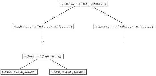 For each leaf node , it includes the identification number of the node, the final decision classification result, and the node’s hash, recorded as:
