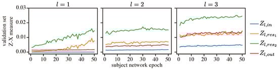 The crux of our approach involves tracking how the Z-X and Z-Y measures evolve during the network optimization process as a function of the learning algorithm epochs. However, we cannot estimate the measures in Equations (4) and (6) directly because we do not have access to the relevant probability distributions. Instead, we will leverage the variational representations of the Z-X measure in Equation (3) and the Z-Y measure in Equation (5) to approximate the measures in a data-driven manner, given access to a dataset consisting of various input–label pairs.