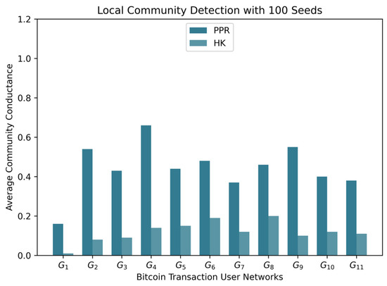 - Andersen, R.; Chung, F.; Lang, K. Local Graph Partitioning using PageRank Vectors. In Proceedings of the IEEE Symposium on Foundations of Computer Science (FOCS), Berkeley, CA, USA, 21–24 October 2006; ACM: New York, NY, USA, 2006; pp. 475–486. [Google Scholar]