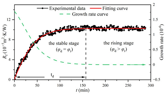 Fitting and growth rate curves of the fouling resistance in the control group.