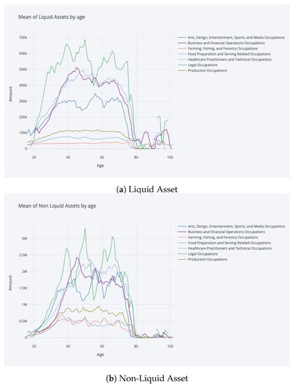 We first generated synthetic data for a range of occupation groups, including low-income, medium-income, and high-income groups. The income trajectories for each group were generated using age-dependent income dynamics, with different growth rates and volatility levels for each group. We also included random shocks to the income streams, such as sudden decreases or increases in income due to economic events or changes in employment status.
