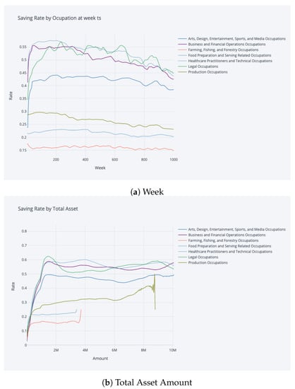 In the following sections, in order to evaluate the performance of the proposed deep reinforcement learning model, we conducted a series of simulations using synthetic data. The simulations were designed to mimic the income trajectories of different occupation groups and to test the ability of the model to determine optimal saving and investment strategies for these scenarios.