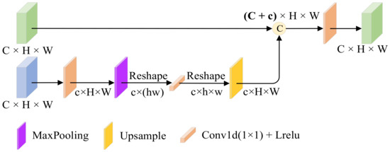 The specific structure of the module is shown in Figure 4. The module has two inputs, a texture feature from the mainstream and a salient feature from the tributary. In the salient tributary we focus on the infrared target; meanwhile, we also need to learn the relationship between different distant targets, i.e., the global information to enhance the semantic information of the image, but the simple convolutional layer has the problem of not being able to learn the long-range dependencies due to the limited perceptual field, so we learn the global information by adding a spatial bias channel to the texture tributary. This module is lightweight, unlike the self-attention operation which is too burdensome. The spatial bias term can be expressed as:
