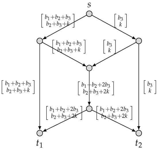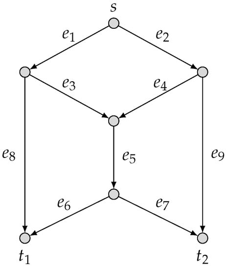 According to (25), we have . This implies that the symbols in F generated by the source node s, which contain the L source symbols and the key of z symbols, can be multicast to all the sink nodes in T by using the network n times. To elaborate this, we first claim that