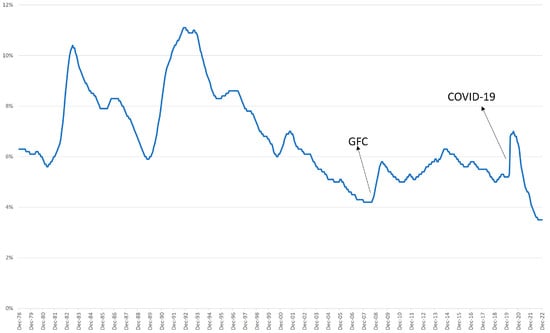 Australia has a stable economy. The unemployment rate has not surpassed the 10% mark since 1994. Since then, the Australian unemployment rate has fluctuated between 4% and 6%. As seen in Figure 1, there were two spikes/increases in unemployment in the last two decades: once after the GFC and one during COVID-19.