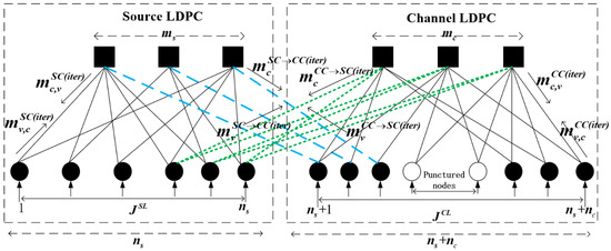 - Chen, C.; Wang, L.; Lau, F.C. Joint optimization of protograph LDPC code pair for joint source and channel coding. IEEE Trans. Commun. 2018, 66, 3255–3267. [Google Scholar] [CrossRef]