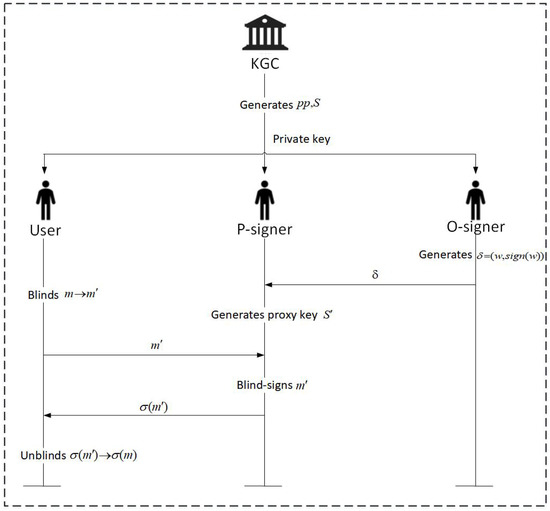 - Amit, K.; Sunder, L. Proxy Blind Signature Scheme. 2003. Available online: http://eprint.iacr.org/2003/072 (accessed on 1 July 2023).