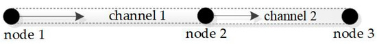 In wireless networks, wireless spectrum resources can be divided into multiple different channels, each occupying a certain frequency range. Wireless network nodes can choose a certain channel to transmit data on their own. Thus, links within the same interference area can transmit data without interference by using different channels, which increases throughput and bandwidth [10]. If multiple interfaces are configured for each wireless node, a single node can perform transmission and reception operations simultaneously, which further enhances the transmission efficiency [11], as shown in Figure 2. It should be noted that the application of multiple channels not only improves transmission efficiency and bandwidth but also brings challenges in software implementation.