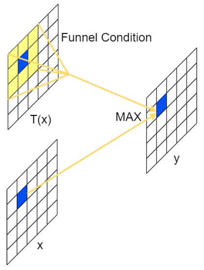 FRULU function [42] is an activation function that can achieve pixel-level spatial information modeling capability proposed by Kuang Shi Technology and Hong Kong Polytechnic University in 2020, and FRELU is obtained by extending RELU and PRELU to 2D activation functions after adding negligible computational cost. As shown in Figure 3, this activation function is the conditional part of the max function by deep separable convolution. This function is converted into a 2D funnel condition, which solves the spatial insensitivity problem in the activation function and also makes the regular convolution have the ability to capture the complex visual layout.
