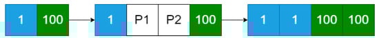 In deep learning, we use a convolutional neural network to extract features from the input image, which then reduces the size of the image, and we restore the image to a certain size to fuse it with other features. This process is generally known as resolution change, or upsampling. There are three main types of upsampling: interpolation, deep learning, and maximum pooling. In the YOLOv5 model shown in the figure, we up-sample feat2 by convolving it to match the size of feat1 for feature fusion. In the original YOLOv5 model, the authors used nearest-neighbor interpolation. As shown in Figure 6, by inserting two unknown values P1 and P2 into the a-plot, P1 = 0 since the distance of P1 from a 0 grey value pixel is less than the distance of 100 grey values. similarly, P2 = 100.
