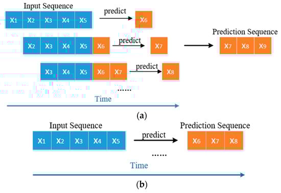 Multi-step forecasting. (a) Recursive multi-step prediction. (b) Direct multi-step forecasting.