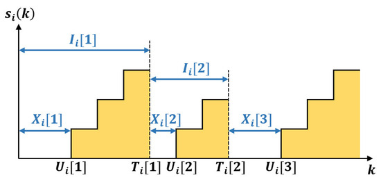 If at time slot k, node i transmits an update to the BS. with probability and with probability . If , indicating that node i does not transmit to the BS in time slot k, must be 0.