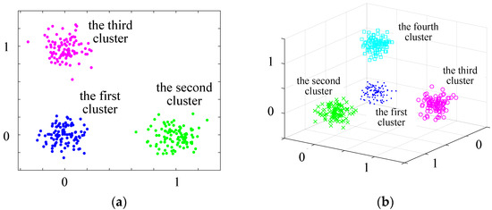 Based on different strategies, the clustering methods can be mainly classified into partition-based clustering, density-based clustering, hierarchical clustering and grid-based clustering. The above clustering methods are usually offline, which needs to repeat the whole clustering process when new data arrives. Partition-based clustering [4,5] assigns a set of data points to k clusters by optimizing a criterion function, where k is the number of clusters as an input parameter. The common problem with partition-based clustering is that only hyperspherical-shaped clusters can be found by this kind of method. Compared with partition-based clustering, density-based clustering [6] can find arbitrarily shaped clusters in a spatial dataset. However, density-based clustering performs poorly for low signal to noise Ratio (SNR) datasets and high dimensional datasets. Hierarchical clustering [7,8,9,10] is another kind of clustering strategy that groups data through a sequence of nested partitions. This kind of method can identify the nodes sparsely distributed in the dataset called outliers. However, it is inefficient to handle the noise points with uniform distribution. A clustering method called clustering by fast search and find of density peaks (CFSFDP) has been proposed [11] that outperforms the above clustering methods on most datasets in terms of clustering accuracy. However, the number of clusters could not be determined by CFSFDP, and good performance depends on the manual selection of cluster centers through the decision graph. There are a kind of clustering strategies that focus on data transformation and use other clustering methods as the partition part, such as RDNNBMF [12], DGSCF [13], and spectral clustering [14]. RDNNBMF is an algorithm that includes a multilayered structure. Its objective function contains the regularization constraint term on the basis images matrix, which is helpful for classification. The original samples are projected into a high dimensional space by a nonlinear map to adapt to more complex data. DGSCF is a dual graph-regularized sparse concept factorization algorithm. It adopts an optimization framework that enhances the ability of feature selection and sparsity to eliminate the influence of noise factors on the algorithm’s performance. Spectral clustering is proposed to solve the problem of partition-based clustering in dealing with datasets with arbitrarily shaped distributions. To complete the clustering process, a k-means clustering algorithm should be performed at the end of this kind of method.