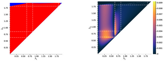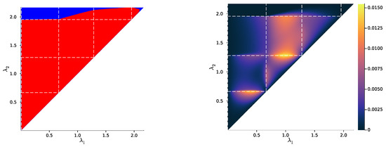 Second, we soften [18] the traditional notion of successive refinement and study the extent to which several-stage processing incurs a loss of information optimality. More precisely, we propose to measure soft successive refinement with the unique information [40] (UI) that the coarser bottleneck holds about the source X, as compared to the finer one . Explicitly, this UI is defined as the minimal value of over all distributions whose marginals and coincide with the corresponding bottleneck distributions (see Section 3.1 for details). As a first exploration of soft SR’s qualitative features, we investigate the landscapes of unique information over trade-off parameters, for again some simple example distributions . These landscapes seem to unveil a rich structure, which was largely hidden by the traditional notion of SR, that only distinguished between SR being present or absent. Among the general features suggested by these experiments, the most significant are that soft SR seems strongly influenced by the trajectories of the decoders over ; the UI often goes through sharp variations at the bifurcations [41,42,43,44] undergone by the bottlenecks (in a fashion compatible with the presence of discontinuities of either the UI itself, or its differential, with regard to trade-off parameters); and the loss of information optimality seems always small—more precisely, the global bound on the UI was observed to be typically one or two orders of magnitude lower than the system’s globally processed information (see Section 3.2 for formal statements). These three conclusions are phenomenological and limited to our minimal examples, but they shed light on the kind of structure that can be investigated by further research. They also suggest the relevance that developing this theoretical framework might have for the scientific question that motivates it. In particular, the link with IB bifurcations and the overall small loss of information optimality would, if generalisable, have interesting consequences for the structure and efficiency of incremental learning.