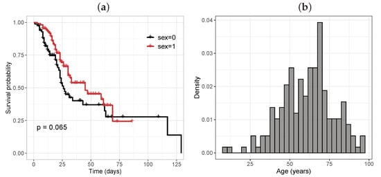 - The survival time declines with advancing age. This result corroborates the findings of several studies that have indicated that older age is a predictor of higher mortality caused by COVID-19 (see [27,28,29]).